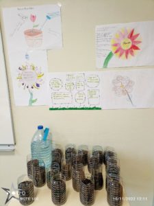 Réalisation de plantations dans des bouteilles recyclées et affiches sur les bienfaits ce ces dernières en anglais :