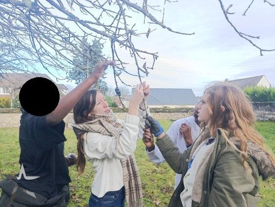 Nos élèves de l’atelier Vert’tiges profitent de journées clémentes pour réaliser des opérations de marcottage dans le verger.